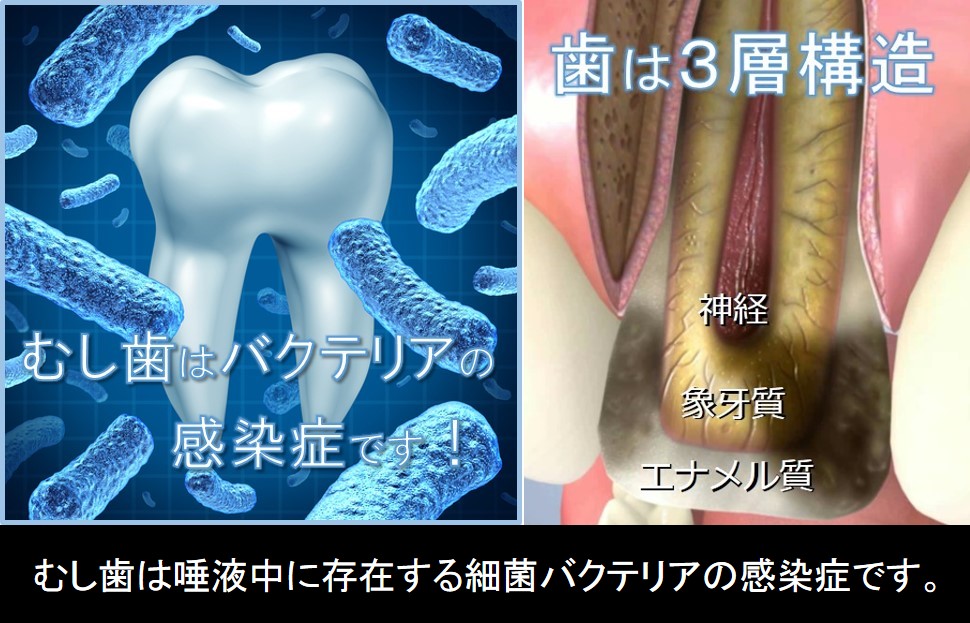 ① むし歯は細菌の感染症であり、細菌を取り除けば治ること。